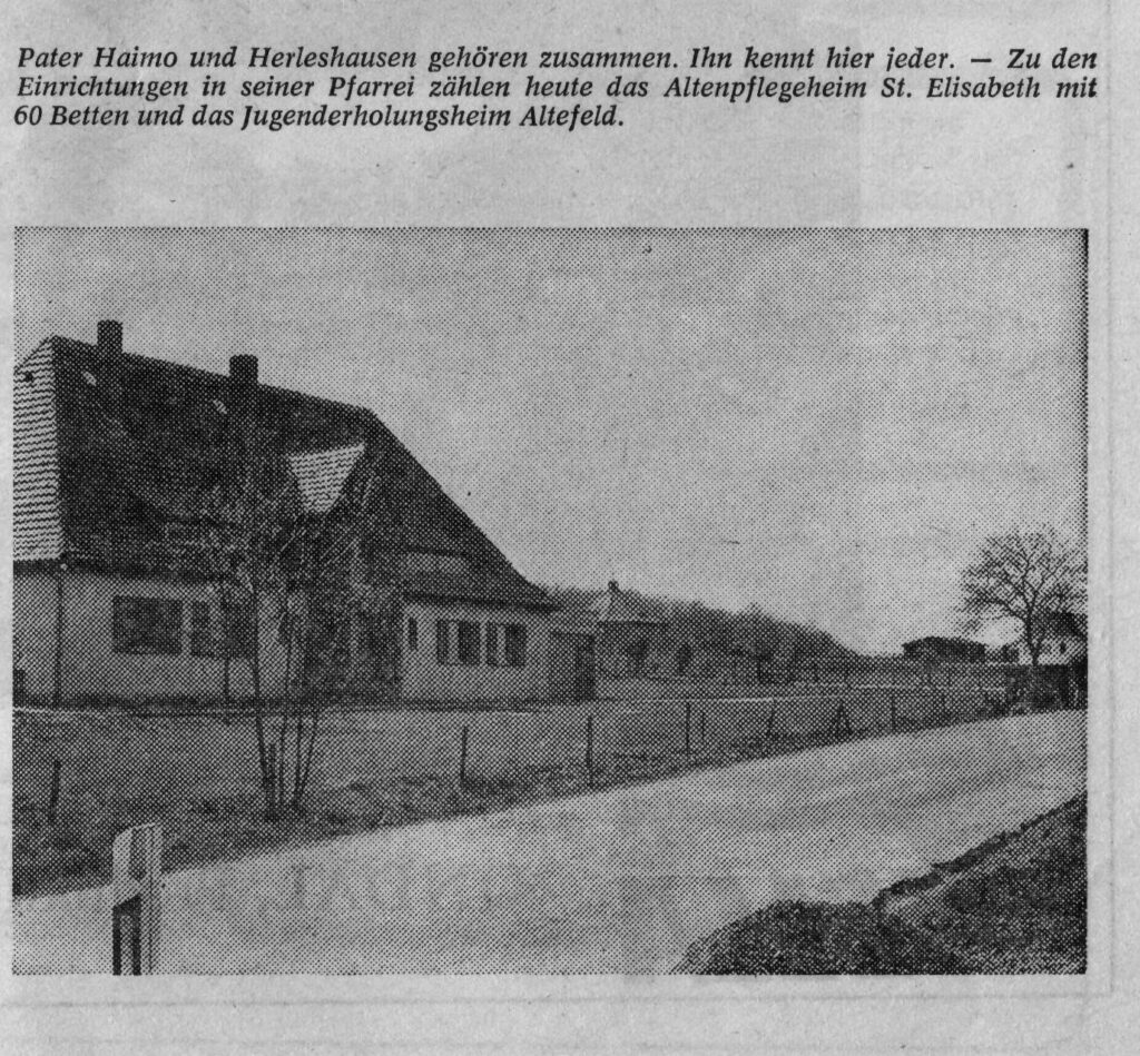 Die katholische Kirchengemeinde Herleshausen hat sich entschlossen, ein bereits erworbenes Haus auf Altefeld auszubauen und eine Kegelbahn einzurichten. „Die Freiheit“ soll das Gebäude künftig heißen, der ehemalige „Boxenstall für fremde Stuten“ des Gestüt Altefeld an der Straße nach Herleshausen. Räume für die Gemeinschaft und eine Kegelbahn sollten Treffpunkte für Menschen aus nah und fern werden. Pater Haimo kannte jeder, denn er war die treibende Kraft für die Umsetzung.