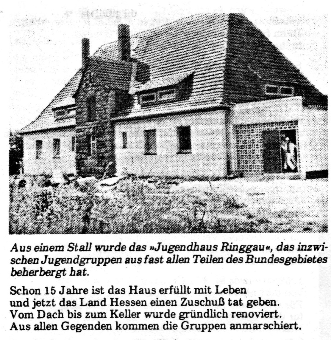 Der ursprünglich angedachte Name „Haus Freiheit“ für das Projekt wurde nun zum „Jugendhaus Ringgau“ umbenannt, das 1972 in seiner ersten Ausbauform eröffnet wurde. Gruppenräume, Schlafräume und eine neue Kegelbahn ergaben einen Ort für Jugendgruppen aus ganz Deutschland. Gemeinschaft stärken und als Erholungsort auf dem Ringgau.
